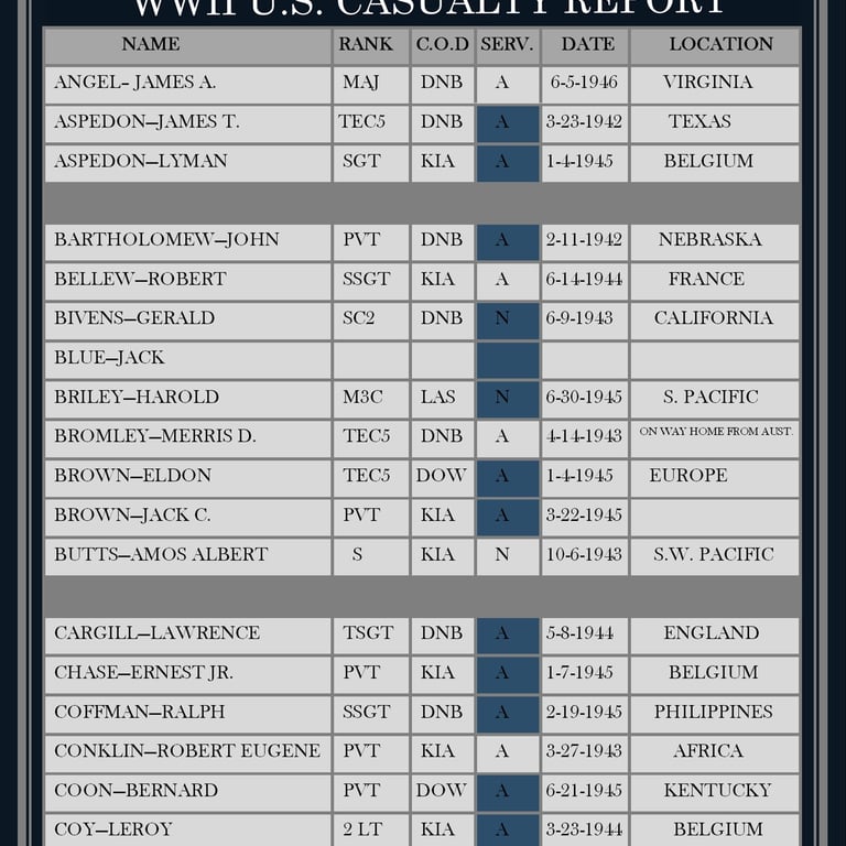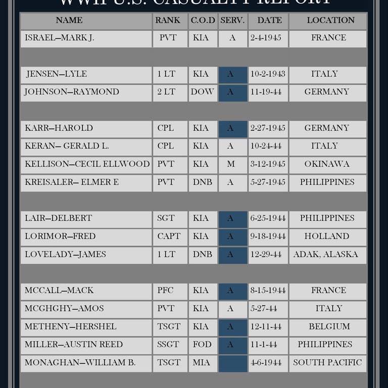 FREMONT COUNTY HERITAGE- CASUALTIES